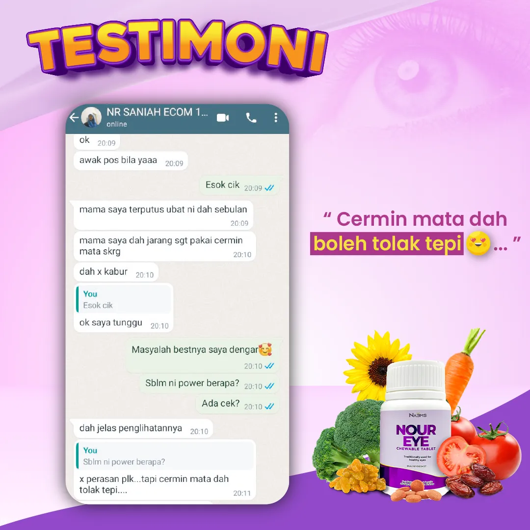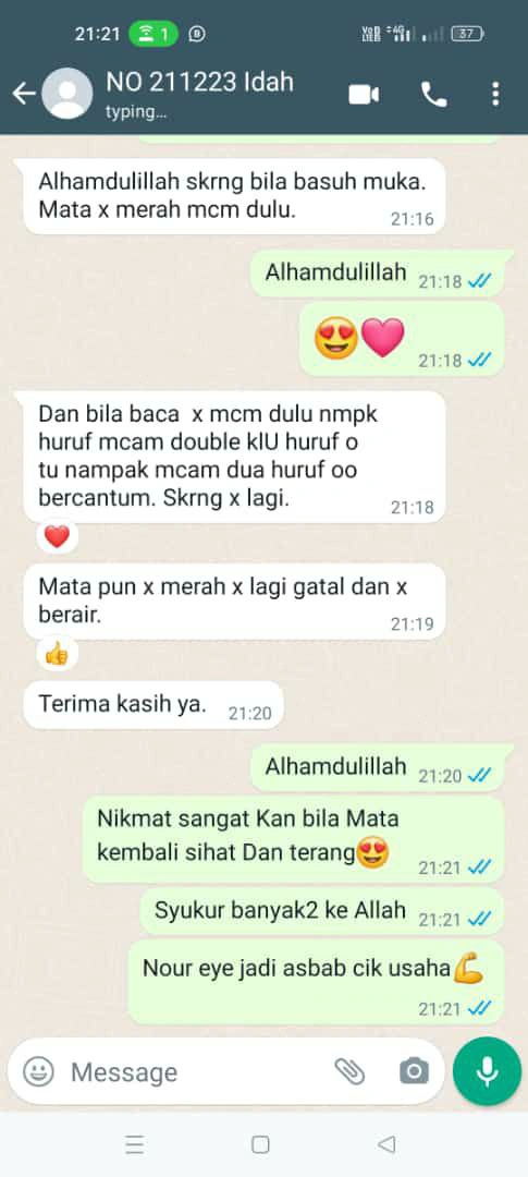 "Alhamdulillah..pengguna dapat kesan yang positif bila mula amalkan Nour eye"