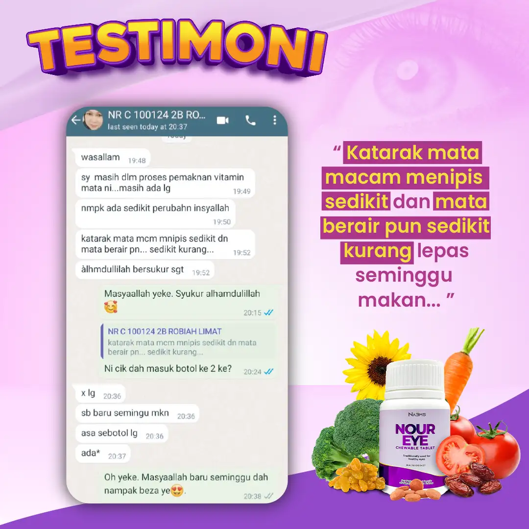 Nour Eye Vitamin Mata Terbaik Untuk Seisi Keluarga. Diskaun 50% & FREE COD UNTUK 89 Terawal Hari Ini.
